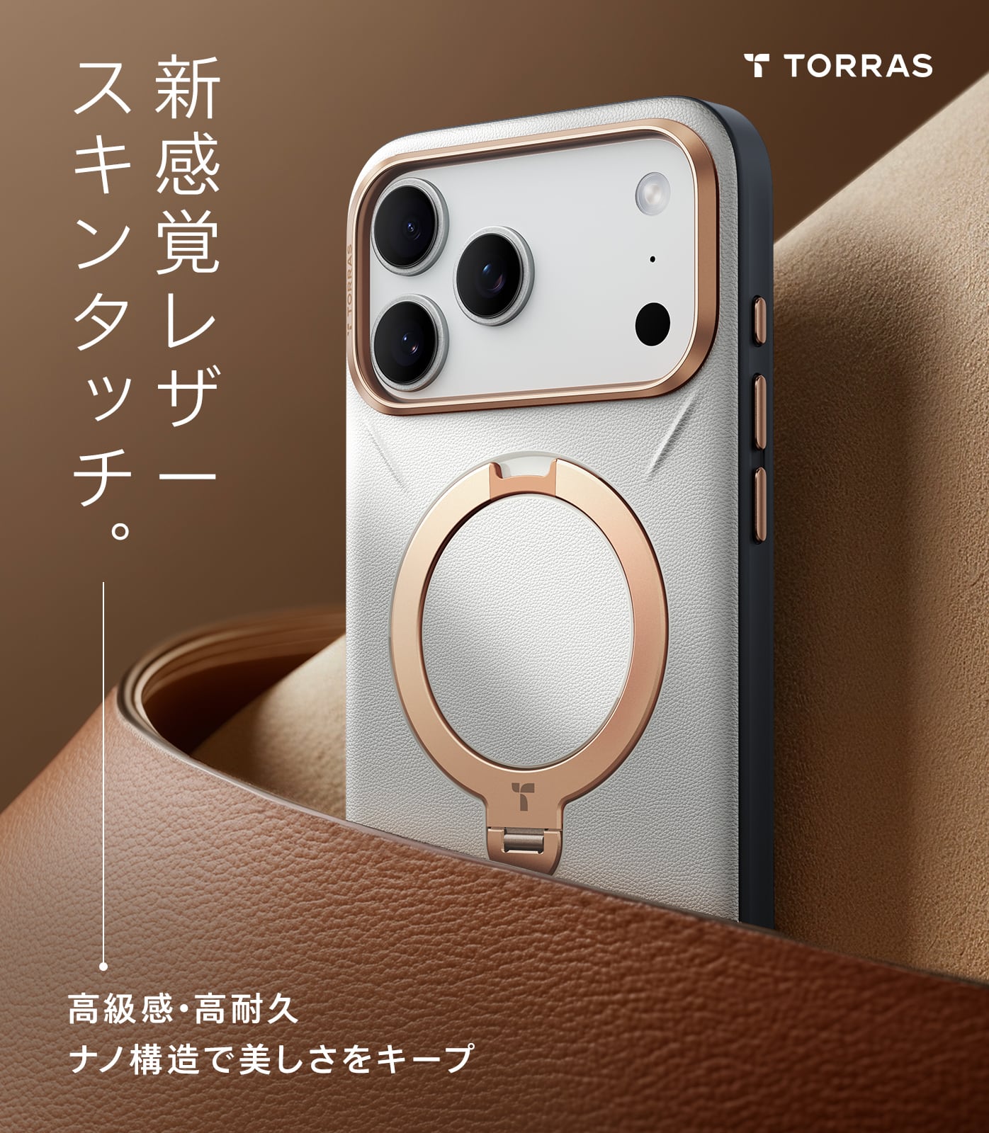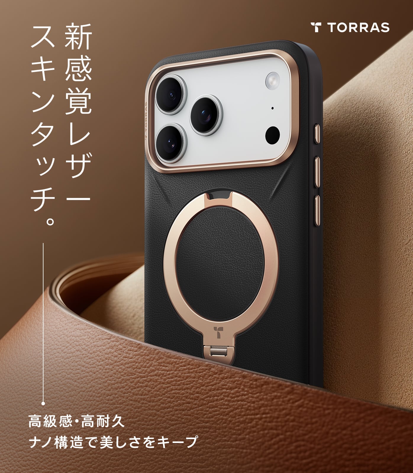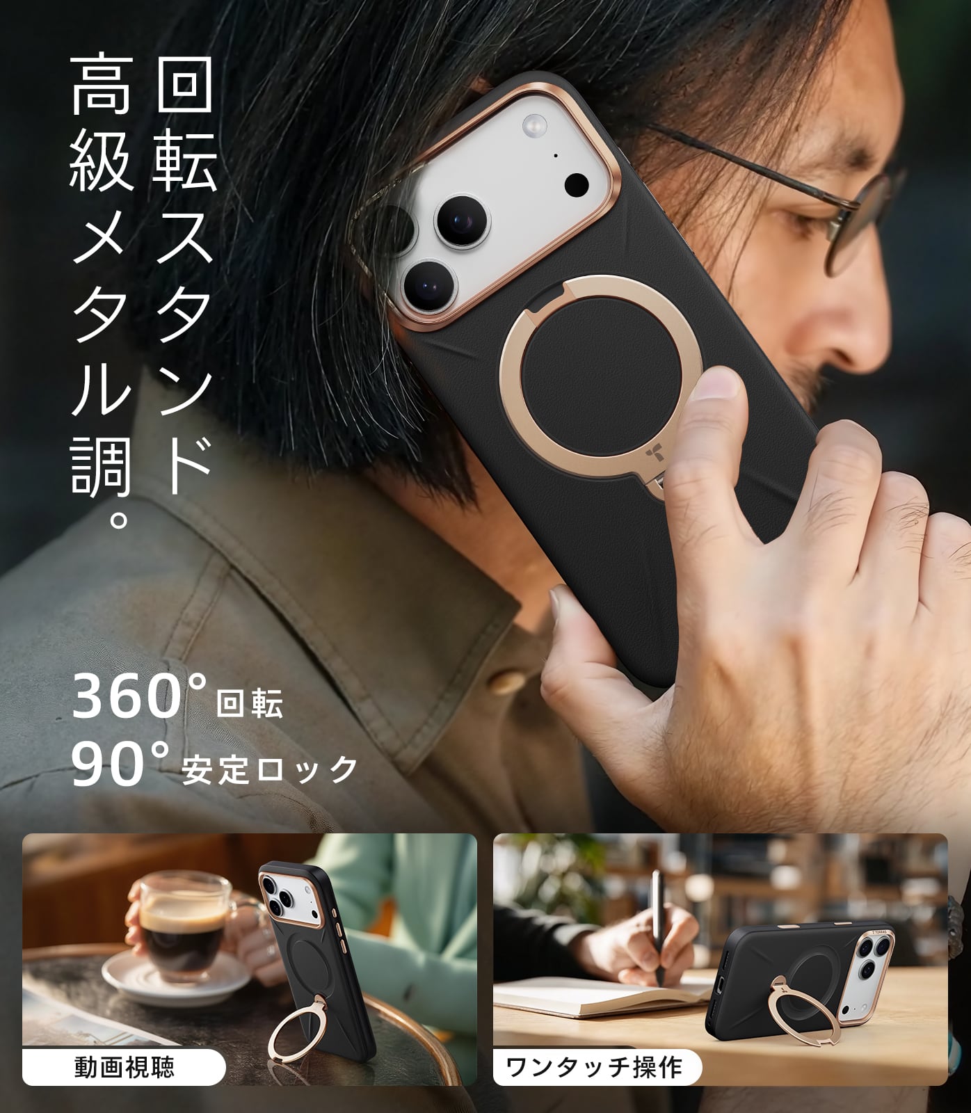 TORRAS iPhone 17 Pro 用 ケース Ostand Q3 レザートーン MagSafe対応 リング スタンド 360°定点回転 縦横両対応 マグネット搭載 革 カメラコントロールボタン 米軍規格 耐衝撃 指紋防止