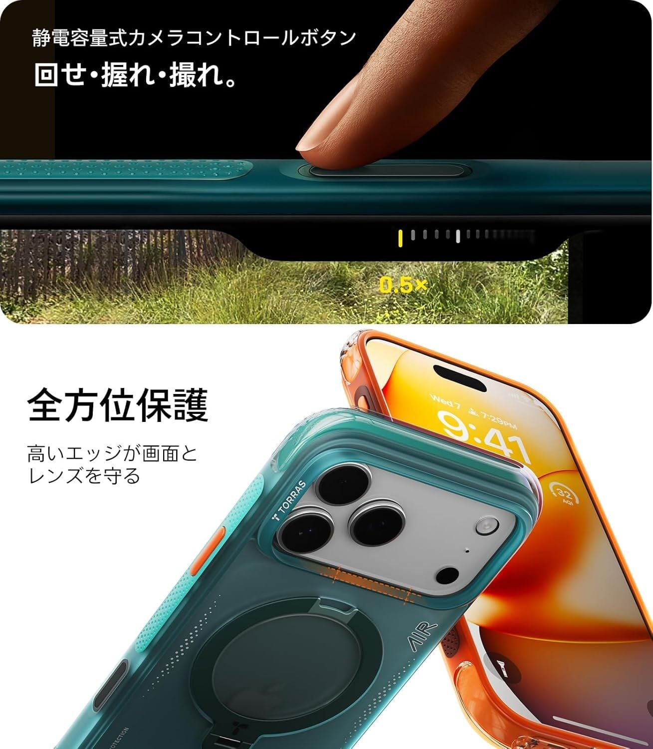 TORRAS iPhone 17 Pro 6.3 インチ 用 ケース Ostand Q3 Air リング スタンド MagSafe対応 360°定点回転 縦横両対応 MagSafe対応 ワイヤレス充電 カメラコントロールボタン付き 登山・アウトドア活動