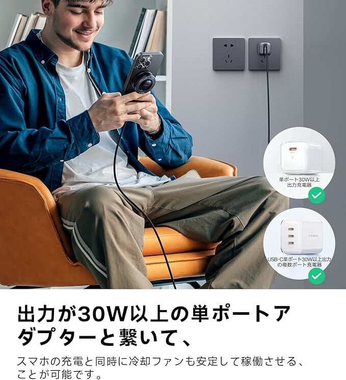 ※冷却効果はご使用環境や周囲の温度、個人の感じ方によって差が生じる場合がございます。モバイルバッテリーを接続しながらのご利用はおすすめいたしません。
