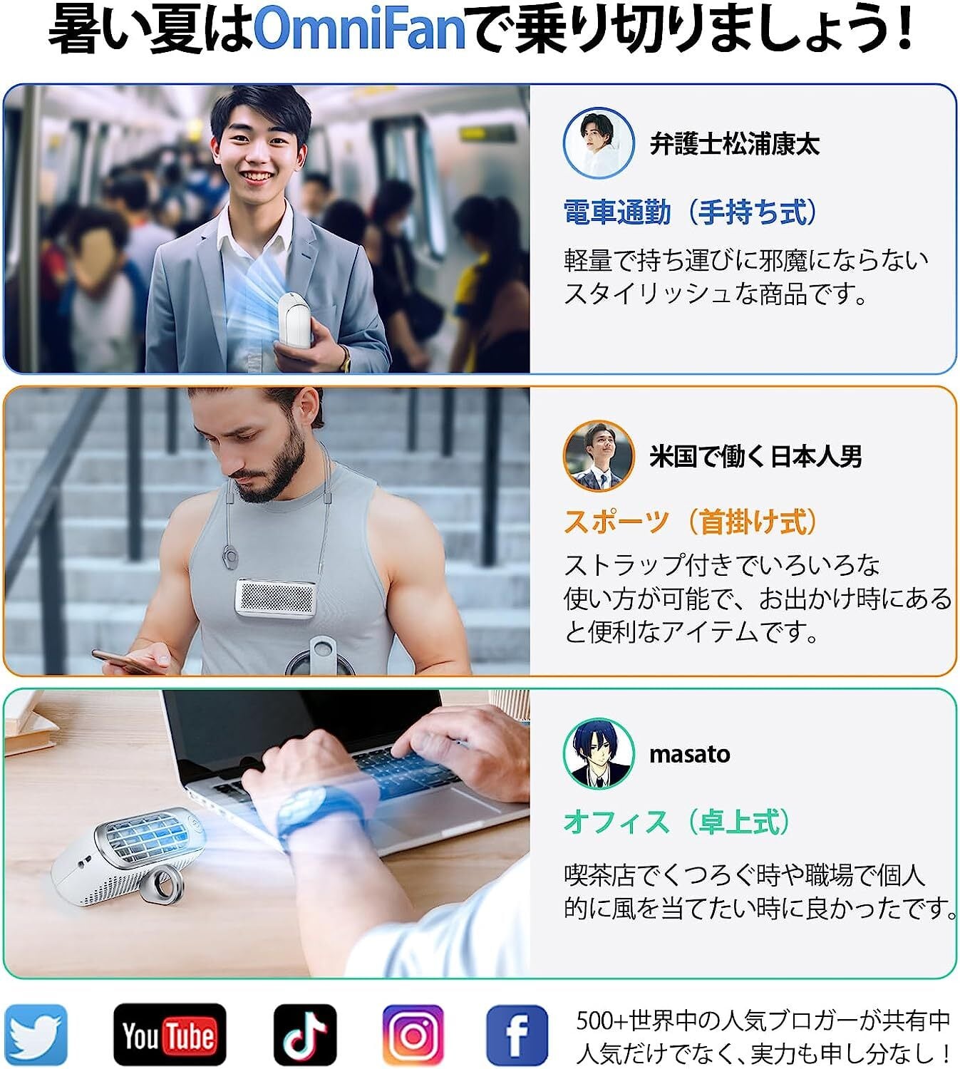 OmniFanは非常にコンパクトで、スマートフォンよりも小さいため、持ち運びがとても便利です。ハンドバッグやポケットに簡単に入れることができます。持ち運んでいると、いつでもどこでも涼しさを感じることができます。